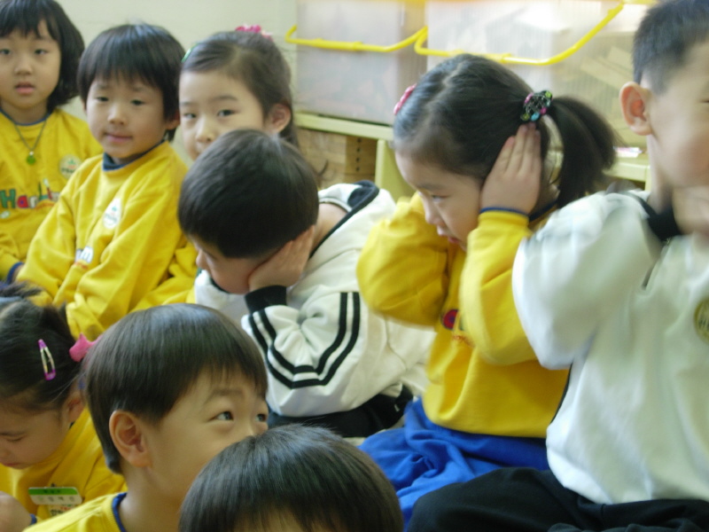 교사: 너희들 왜 그렇게 손으로 귀를 막고 얼굴을 찌푸리니?