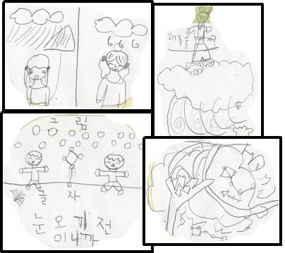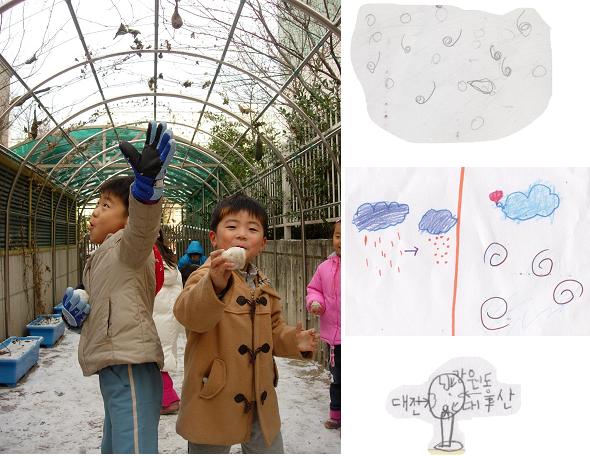“바람은 구름이 부채질해서 부는 것 같아요.”“눈이 어떻게 내리냐고요? 우리엄마가 그랬어요. 여름에 내린 비가 강으로 갔다가 그 비를 구름이 빨아 들여서 겨울이 되면 눈이 돼서 내린대요.”