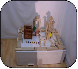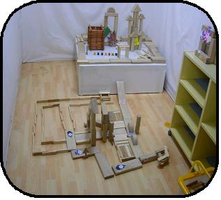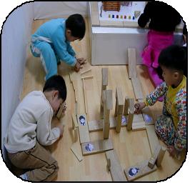 마을과 이어지는 부분을 고민하던 유아가 비스듬히 긴 블록을 세운다.