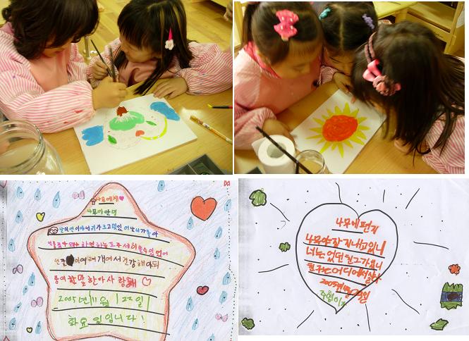 “우리 이제 나무에 대한 이야기를 마무리 하려고 하는데 더 하고 싶은 것이 있니?” “나무한테 편지 써요.” “우리가 나무이름 이렇게 적어서 달아줘요.” “나뭇잎이 다 떨어져서 나무가 자기 나뭇잎 모르니까 다음에 기억하라고 나뭇잎 주워서 우리가 붙여줘요.” 어린이들이 쓴 편지에는 어느새 나무와 어린이를 연결하는 마음의 다리가 놓여있었다.“진짜 나뭇잎은 벌써 색이 변해서 예쁘지가 않아.” “그래. 바닥에 있는건 부서진것도 있어.”