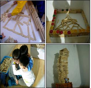 카프라를 눕혀서 쌓은 탑과 모서리 쪽을 세워서 올린 탑의 높이와 쌓아 올린 패턴이 달랐다. 높이 쌓는 것이 최고라고만 생각한 아이들은 계속 쓰러지는 탑을 보며 이것이 아니라고 생각한 듯 잠시 머뭇거린다. 쓰러질때 마다 친구들이 던지는 외침 속에서 무언가를 찾은 건 아닐까??