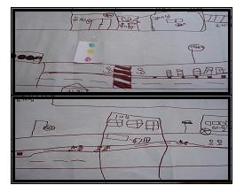 도로레지오를 진행하는 아이들은 스스로 각자의 역할을 정해 자신이 봤던 다양한 것들을 설계도에 나타내기 시작했고 완성된 설계도를 살펴보면서 새로운 도로가 만들어지고 있다.