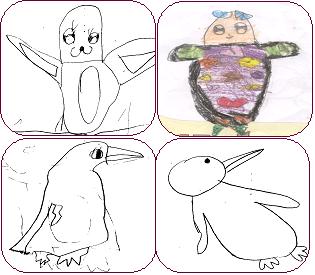 유2: 너가 그린 펭귄은 좀 이상한 것 같아.