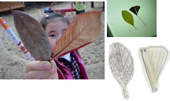 “여기 나뭇잎 앞이랑 뒤랑 색깔이 달라요.”