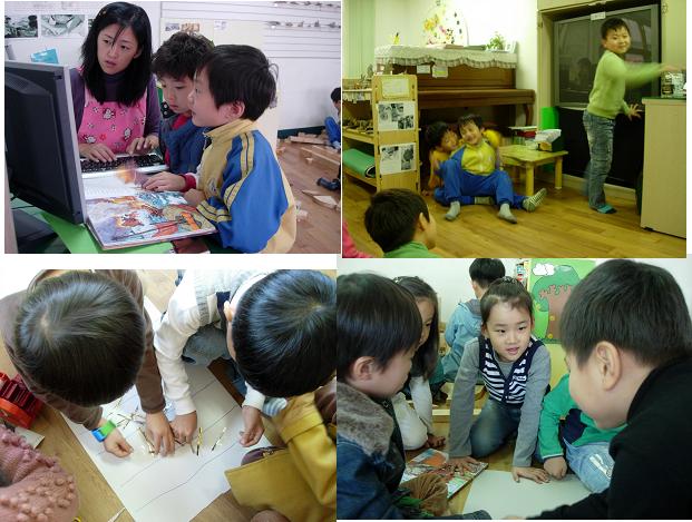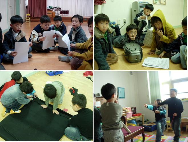 다 똑같이 생긴 나뭇잎 모양인줄 알았는데 그 조그만 다름에 대한 발견이 끝도 없이 이어진다.“우리도 동극 할래요.” 여자 친구들이 하는 인형극을 본 남자 친구들... 자기 들도 인형극을 하고 싶단다. 그런데 좀 다르다. 그림으로 그려서 하는것이 아닌 몸으로 하는 동극을 하고 싶어한다. “책 내용이 길어. 조금 줄여야 겠어” 함께 대본을 만들었다. 해설은 줄이고 대사는 더 많이 넣고. 이순신장군 동극을 친구들에게 보여 주었다. 친구들의 반응은? “와~ 재미있다.” “그런데 거북선은 왜 없어?” “책 읽을 때 책상은 왜 없어?” 이어지는 친구들의 질문이다. “우리는 만드는것 잘못한다.” “책상은 무거워서 빨리 못 옮기는걸.” “그럼 여자 친구들이 도와주면 되잖아." "내가 도와 줄께.” 이렇게 친구들의 많은 관심 속에 이순신 동극 공연을 위한 여행이 시작되었다. “말하면서 하니까 목소리가 작아서 잘 안 들려요.” “대사를 다 못 외우겠어요.” “카셋트에 녹음해서 우리가 말하는 것처럼 하면 크게 할 수있는데.” “음악이 있어야 돼요. 다~ 다다~ 다~” 이렇게 해서 대사를 녹음하고 대사 앞 뒤 부분에 음악을 넣었다. 그리고 녹음한것을 켜 놓고 연습을 해보았다. 자기 대사가 나올 때 열심히 입모양을 만든다. 연습 후 친구들의 이야기! “중요한건 음악이 아니고 빨리 옮기는 거예요.” “동작이랑 말하는게 중요해요.” “뭐 해볼라하니까 말을 잘 못할것 같아요. 말을 틀릴것 같아요.” “대사나 그런거 다 외웠으면 좋겠어요. 그래야 말하기 쉽고, 안 틀리잖아요. 그리고 생각안하고 말 할 수 있어요.” “지금 내가 할 차례인데 자꾸해요. 쓰러질 차례인데 안 쓰러져요. 타이밍이 안맞아요.” “장난 치는것” 이순신 동극을 하면서 재미있는 점도 많지만 자꾸만 새롭게 나타나는 어려운 일들! 어떻게 풀어 갈수있을까?
