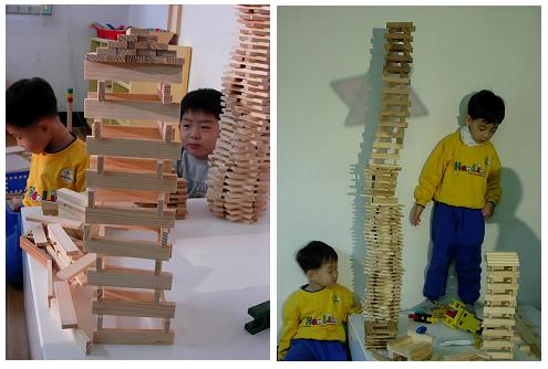 세모아파트와 카프라를 세워서 만든 아파트는 모두 무너졌지만 육각형의 아파트는 윗부분이 사라졌어도 형태만 변화될 뿐 아직도 교실의 한부분을 차지하고 있다.