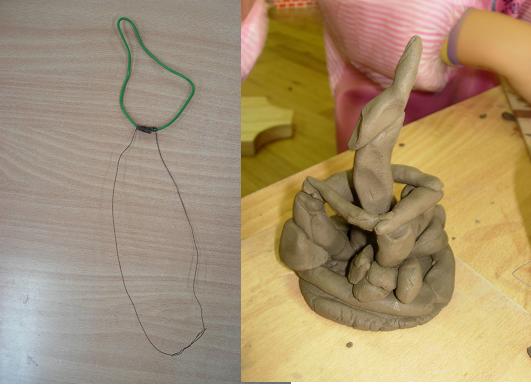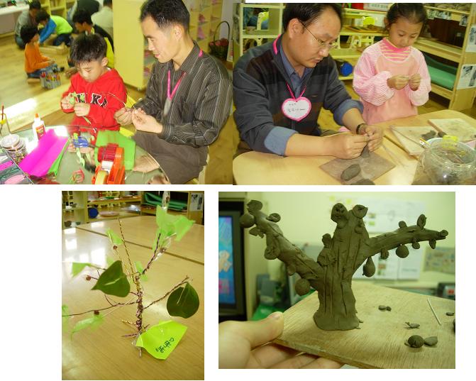 아버지와 함께 철사로 나무를 만들어 세우는 방법과 점토로 만든 나뭇가지와 나뭇잎을 붙이는 방법을 어떻게 고안했을까요?<철사영역>
