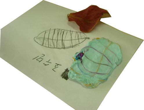 그리고 철사로 나뭇잎 모양을 만들고 한지도 붙였어요.