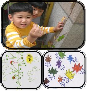 그래서 잎새반 친구들은 담쟁이가 자라고 있는것인지를 확인하기 위해 벽에다 크레파스로 담쟁이가 자란부분까지를 표시 해 놓았다.* 국화를 교실로 가져왔어요! *