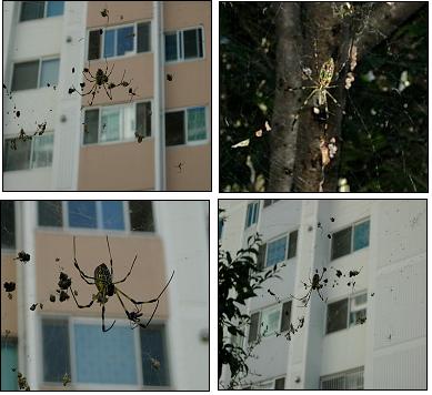 어느날, 점심을 먹고 놀이터로 나왔다. 여러 놀이기구를 즐기는 친구들도 있었지만 몇몇 아이들은 풀숲을 관찰하기도 하였다. 그러던 중 풀숲에서 여기저기 거미줄을 치고 사는 몇 마리의 거미들을 발견하였다. 봄에 거미에 관심을 가지며 공부하다가 시들어버린 그 마음을 다시금 끄집어내며 그 때 보다도 더 한 흥미를 보였다. 아마 예전에 보았던 거미와는 달리 거미의 큰 몸집하며 알록달록 무늬하며 또한 거대한 거미줄의 위력이 아이들의 큰 관심의 대상이 된 것 같다.