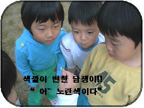정말 잎새반 유아들의 이야기처럼 하늘나라에가서 햇님을 만나고 싶어서일까요?? 아참 그리고 또다른 새로운 발견 담쟁이가 색깔이 변하고 있어요! 왜 색깔이 변하지?? 잎새반 유아들은 색깔이 변하는 현상을 어떻게 생각할까요?