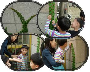 담쟁이를 벽으로 부터 떼어내려고 당겨보는 잎새반 유아들....그러나 쉽지가 않았다. 정말 담쟁이는 벽을 너무 좋아하나보다.