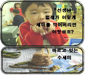 담쟁이가 벽에 붙을 수 있는이유는 바늘일까요 아님 정말 담쟁이줄기(잎새반 친구들이 말하는 배)에 찐득찐득한 풀이 있을까요? 다음주에는 담쟁이가 어떻게 벽에 붙어 있을 수 있는지를 잎새반 친구들이 찾아 낼 수 있을까요?