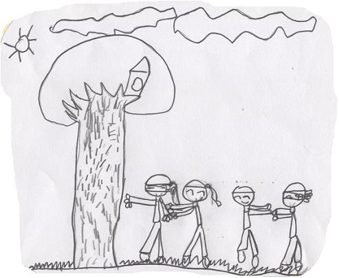 두명씩 짝을 정해 한 친구가 눈을 가리면 한친구는 그 친구를 안내한다. 무서워하거나 다치지 않을까하는 교사의 걱정과는 달이 아이들은 새로운 세계를 보는듯 재미있어하고 친구를 조심조심 안내하는 모습이 아름답게 보였다.