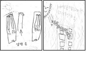 2-2번째 가설: 그리고 나는 깨끗한 유리창과 햇빛, 그리고 기름도 필요하다고 생각해. 우리 복도에 보면 미끌미끌하잖아. 그건 장판에 기름이 있기 때문이야. 그래서 복도에 무지개가 생기는거야.