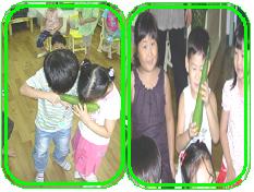수세미를 보고서 이야기를 나누 던 중 교사와 함께 그것은 유아들이 이야기한 오이나 호박이 아니라 수세미란것을 알게 되었다.