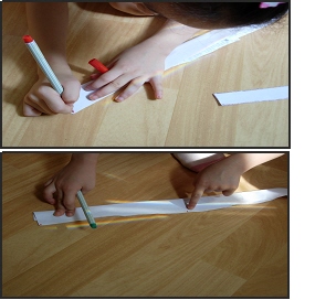 유아2:자가 있으면 좋은데...아! 내가 종이를 붙여서 자를 만들꺼예요.