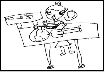 "선생님~ 왜 애기가 안나와요?"라는 질문을 한 친구가 하였다. 아기가 엄마 뱃속에서 생기고 금방 자라서 나올거라는 아이들과의 추측과는 다르게 선생님의 배가 항상 불러 있으니까 아이들이 궁금해 하였다. "선생님 배가 둥그랗게 불룩해요.."하는 이야기와 함께 그 속에 아기는 어떻게 있을까? 그림으로 한번 표현해 보기로 했다.