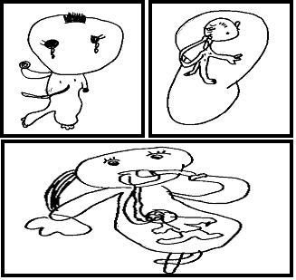 많은 친구들이 탯줄을 표현하였으며 엄마의 입과 탯줄을 아기의 입과 연결시켜 놓은 것이 특징적이었다. 대부분의 아이들이 아기의 탄생에 관련된 비디오나 어머니의 이야기들로 아기의 탄생에 관하여 잘 알고 있는 듯 했다.