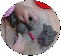 찰흙을 주무르고, 자르고, 구멍을,뚫어보고, 꼬아도 보며 이렇게 저렇게 만져보았다.