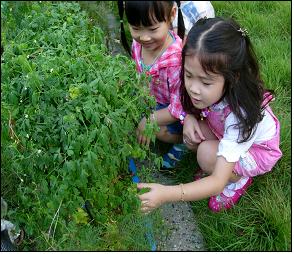 유2: 발바닥이 끈적끈적해서요.< 어! 풍선초열매가 많이 떨어졌다 >