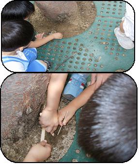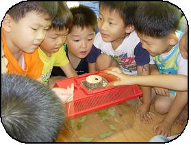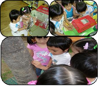 등원하자마자 풍뎅이를 관찰하러 가는 우리 아이들...