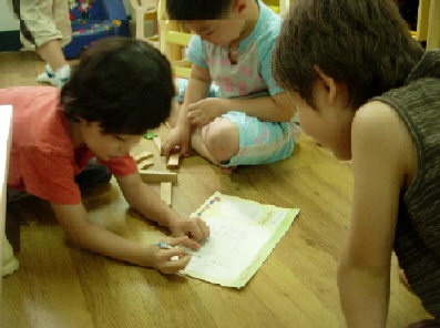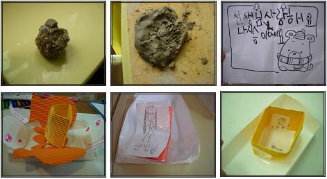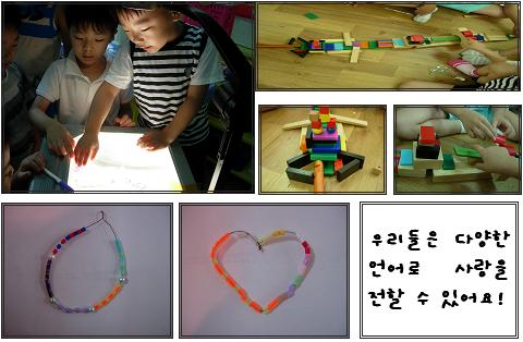 다양한 언어를 지닌 우리 친구들. 그들만의 언어로 선생님께 사랑을 보냈습니다. 아마 이렇게 많은 언어를 지닌 친구들은 없겠죠^^T: 너희들 지금 무엇을 만들고 있니?