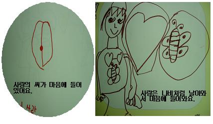 C5:사람은 모두 마음에 씨를 갖고 태어나요.한친구와 내가 갖고 있는 마음의씨가 만나면 그게 사랑이 되는 거예요.7-8살이 되면 그 씨가 서로 만날수 있어요