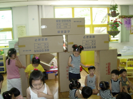 그 동안 잎새반친구들이 모아 놓았던 상자를 궁전의 모양으로 쌓아 올려 보았다.
