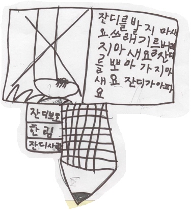 그림, 잔디를 뽑는 그림을 그려서 X표시를