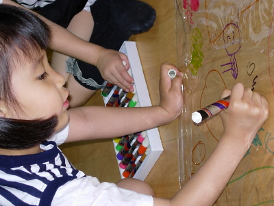 물고기들이 사는 바닷속은 어떨까? 아이들과 이야기 나누며 커다란 아세테이트지에 그림을 그려보았다. 앞 뒤로 다 감상할 수 있는 투명한 곳에 넓은 곳에 마음껏 표현하니 아이들이 너무나 좋아하였다.