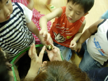 달팽이를 꺼내서 직접 만져 볼 수 있게 하였다.