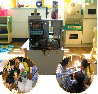 하늘반에서만 볼 수 있는 맛있는 음료수 가게 놀이. 쥬스를 먹고 나면 디스켓 쿠폰을 쏙 넣어 주세요. 따깍 다깍~ 단추를 누르면 넣었다, 뺏다, 마음대로 너무 재미있지요. 아~ 그리고 잊지 마세요. 쓰레기는 여기 쓰레기통에 넣어야 된다는것!