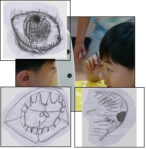 인터넷으로 조사하는 팀, 책을 찾아보고, 개미집을 살펴보고, 돋보기로 관찰하면서 개미의 죽음 원인을 살펴보고 있답니다.친구 이야기를 듣고 얼굴을 그렸던 친구들이 이제는 부분 표상에 들어갔어요.