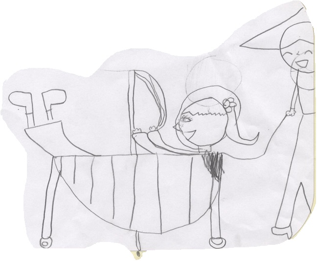 - 우산에 바퀴를 달아서 타고 아빠가 끌어줘요.