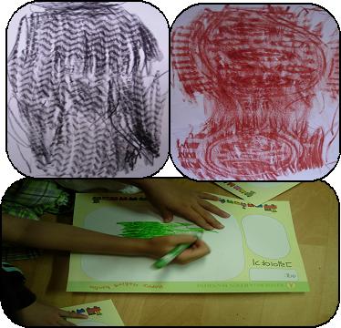 신발 바닥에 종이를 대고 색연필로 세게 칠하면 짜자잔~~~ 선명하게 보인답니다.