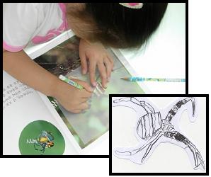 지난 시간 책에 거미를 살펴보았으나 TV화면으로 비추어진 그림으로는 자세한 거미의 생김새를 이야기 하지 못하였다. 책에 있는 거미를 따라 그리는 탐색활동을 통해 거미는 머리가슴과 배, 두 부분으로 나눠져 있으며 다리가 8개이고 , 더듬이 다리와 실젖도 있다는 것을 알게 되었다.