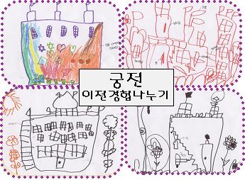 궁전을 그린 후 잎새반 친구들에게 그림에 대해 물어 보았더니 궁전을 넘어가는 다리도 있었고 궁전에 세워진 깃발, 화살, 계단........