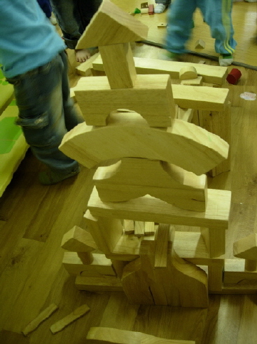 뚝딱뚝딱 멋진 성을 만들어 가기 시작한 잎새반 친구들...선생님을 찾지도 않고 어찌나 열심히 하는지...* 블럭으로 만든 미니 궁전 완성......