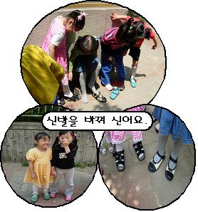 바꿔신고는 재미있다고 뛰어다니더니 얼마 지나서 투덜거렸다. " 내 신발이 제일 편해요. "