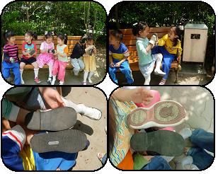 신발을 가지고 활동하다가 밑바닥에 대해 유아들이 관심을 가졌다.