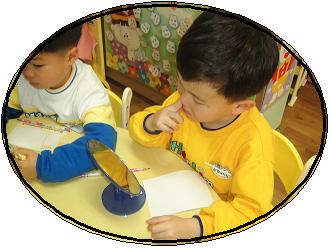 거울에 자신의 코를 비춰보았다.자신의 코를 관찰하며 옆 친구의 코와 다르다는 것을 알았다.