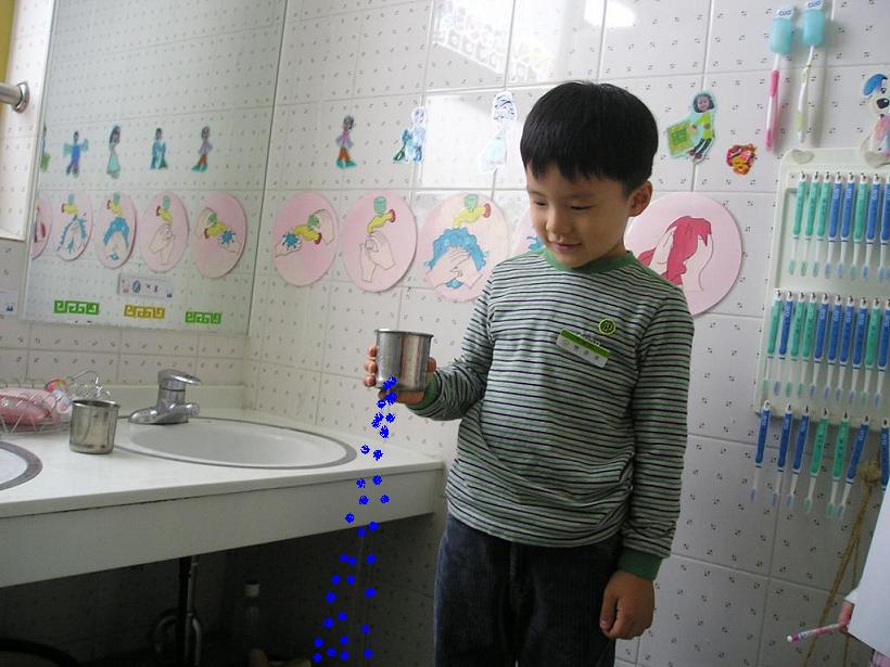 "아~ 선생님. 여기 보세요. 요기서 물이 나와요."