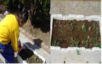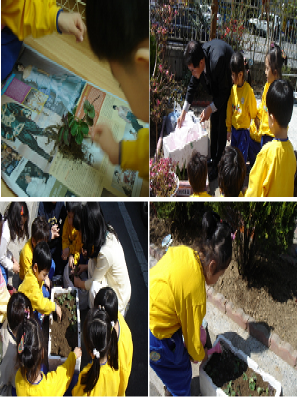 짜잔~ 이사장님의 도움을 받아서 흙과 거름을 구해오고 옹기종기 모여 앉아서 흙을 파고 모종을 심었어요.