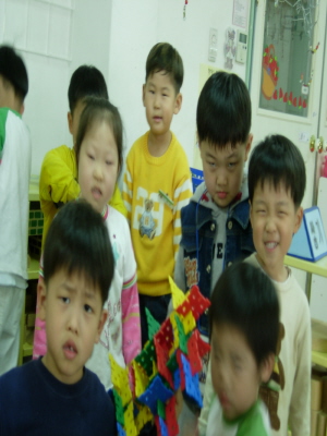 한참 이야기를 나누고 있던 중 한 유아가 거울 앞으로 달려가더니 C: 뭐 별로 안 이상하네....그러고선 다시 친구 앞으로다가 선다. 그리구선 선생님께와서는 찡그린 표정을 사진으로 찍어 달라고 했다.- 내가 사진 찍어 줄께 -
