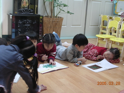 딸기나무가 있다는 친구들과 줄기가 나무처럼 올라가고 거기에 딸기가 열린다는 친구들로 생각이 나뉘었어요. 이쯤에 이야기로만 들었던 친구들이 2-3명씩 모여서 책을 읽는 시간을 가졌어요. 생각을 나누며 책을 일고 나서 다시 표상하는 시간을 가졌지요. 여전히 우리 친구들 생각이 딸기 나무와 하늘로 올라가는 줄기로 나뉘었어요. 그래서 프로젝트 과제로 딸기는 나무에서 열리나요?(선팀)