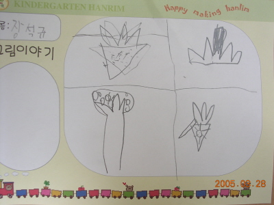 서로 그린 그림을 보면서 이야기를 나누다가 질문을 하였어요. " 이거 뭐야? 왜 니 그림에는 나무에 딸기가 있어?" "이거? 이건 딸기 나무야."(딸기팀)