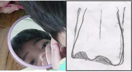 C : 거울로 내 코를 보니 기분 좋았어요.* 입 부분표상